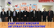 Kırşehir Ahi Evran Üniversitesi ziyaretine Rektör Karataş’a ÇAKÜ Rektör Yardımcısı Prof. Dr. M. Nuri Öner, Lisansüstü Eğitim Enstitüsü Müdürü Prof. Dr. Ali Yiğit, Genel Sekreter Muharrem Sezen, Sağlık Kültür ve Spor Daire Başkanı Halil Yetim, Yapı İşleri ve Teknik Daire Başkan Vekili Muhittin Şimşek ve Yaran Kültürünü Uygulama ve Araştırma Merkezi Müdürü Öğretim Görevlisi Murat Korkmaz eşlik ettiler.