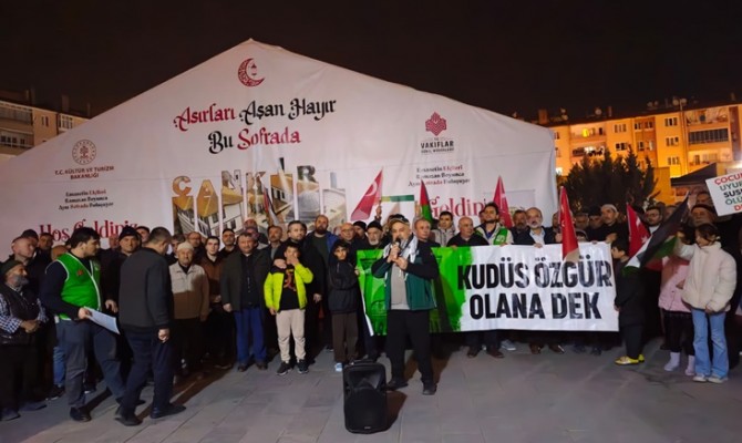 İHH Çankırı Şube Başkanı Hasan Kale tarafından yapılan basın açıklamasında şunlar söylendi: “Aksa’ya Sahip Çık!