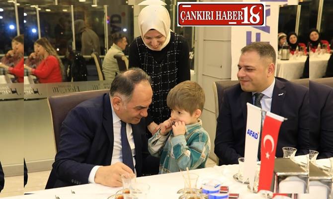 Çankırı Valisi Hüseyin Çakırtaş, Vali Yardımcısı Emre Urhan ve AFAD İl Müdürü Mehmet Tahir Göktaş ile birlikte Çankırı'da ikamet eden depremzede ailelerle iftar programında bir araya geldi.