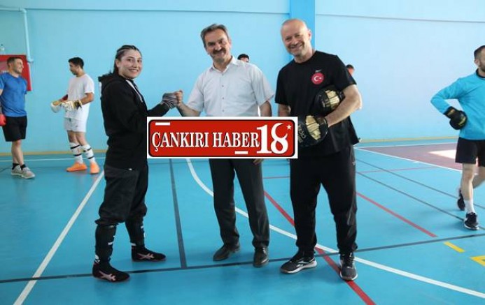 Çankırı Gençlik ve Spor İl Müdürü Sadık Ak, Çankırı Hamide Bıçkın Kamp Eğitim Merkezi’nde çalışmalarını sürdüren Büyükler Savate Combat Milli Takım sporcularını ziyaret etti.